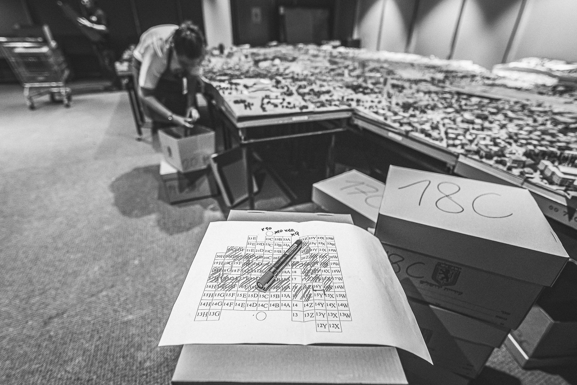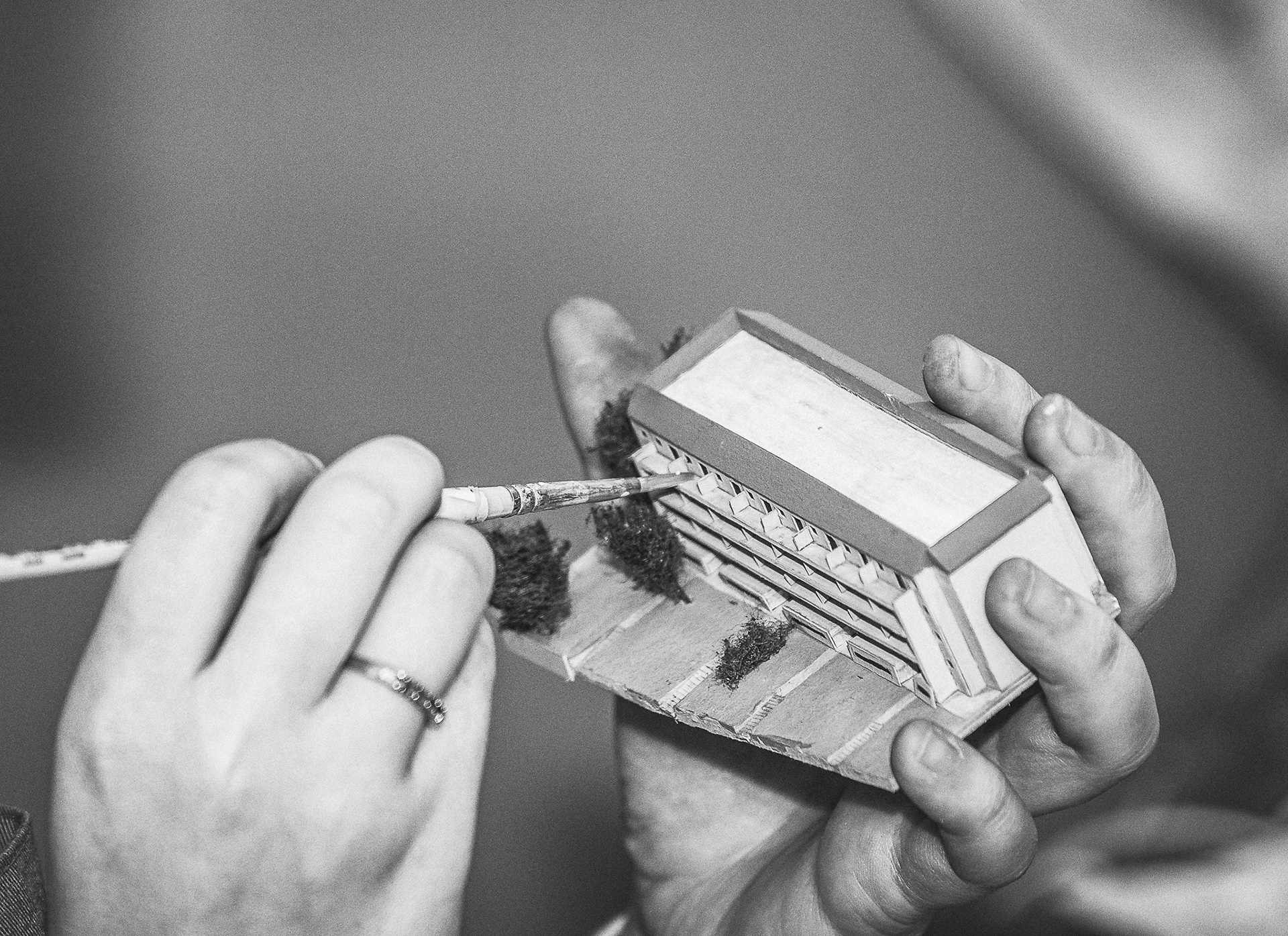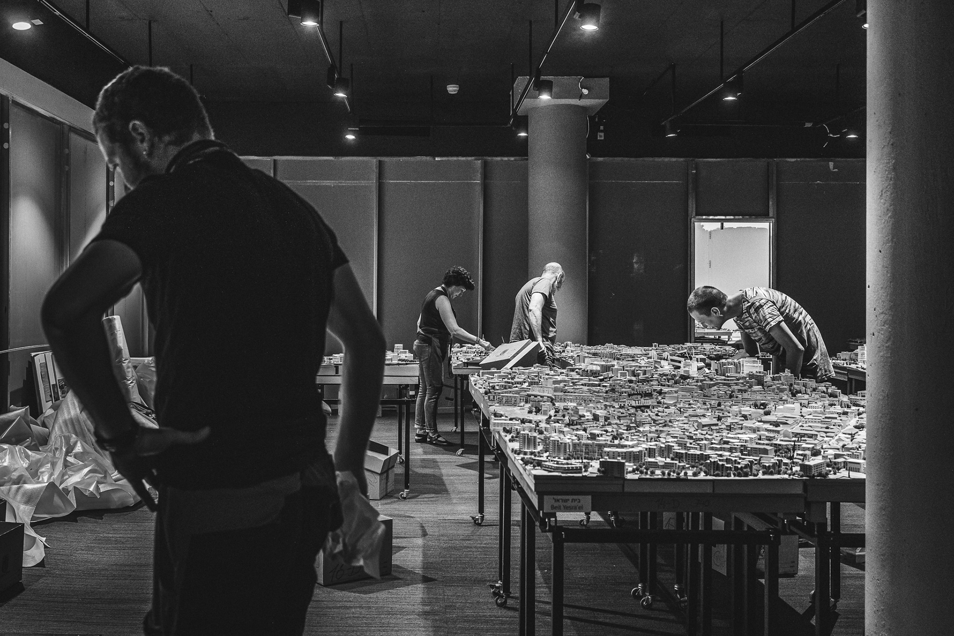 On April 22nd, 2020, a fire broke out in the Jerusalem municipal building, which houses a large showroom displaying a miniature model of the city. The "IN MINIATURE" exhibit follows a team of professional restorers through the lengthy process of reconstructing the models.